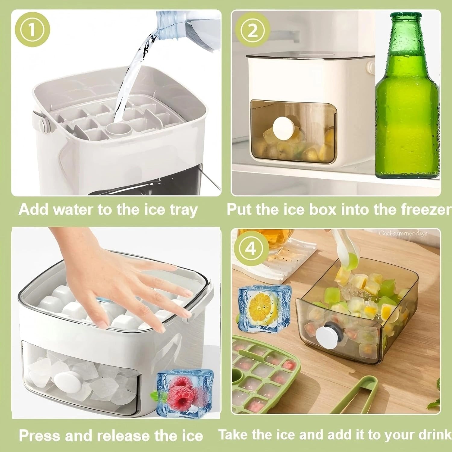 Grâce au bouton poussoir innovant, obtenez des glaçons parfaits en quelques secondes — sans torsion ni effort. Les glaçons tombent directement dans le bac de stockage, propres et prêts à l’emploi, même avec les mains mouillées.