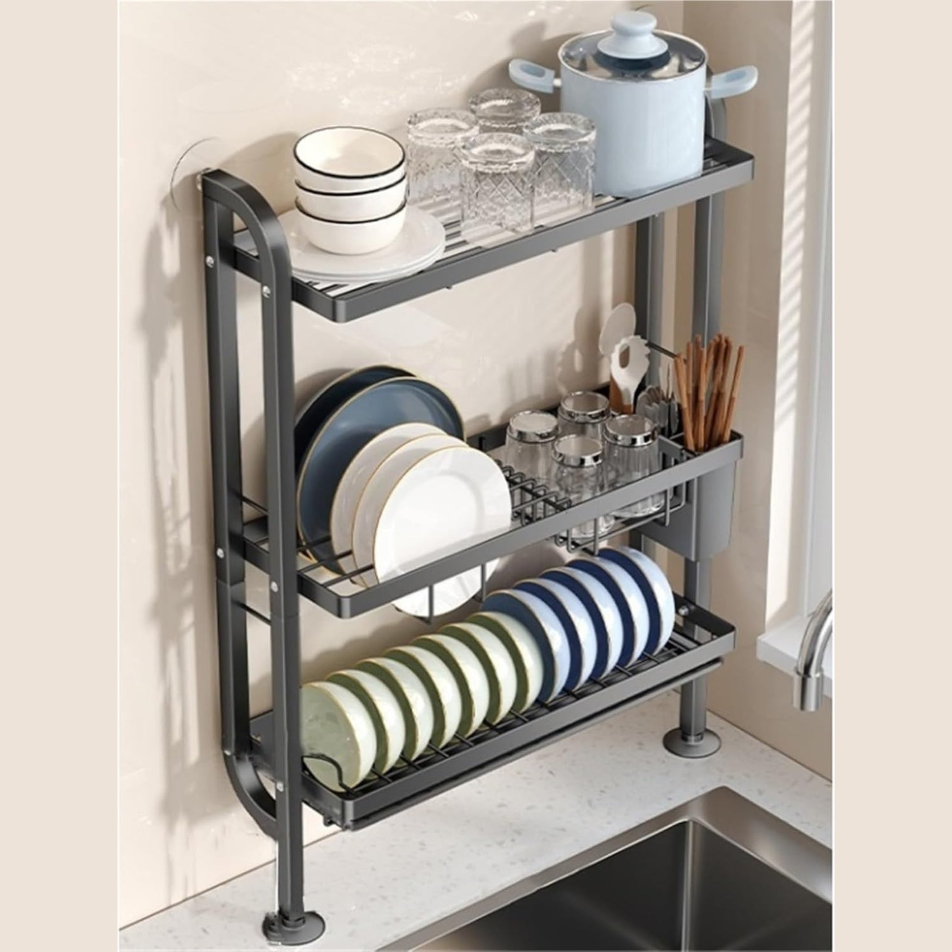 Égouttoir à Vaisselle 3 Niveaux – Organisateur de Cuisine Polyvalent