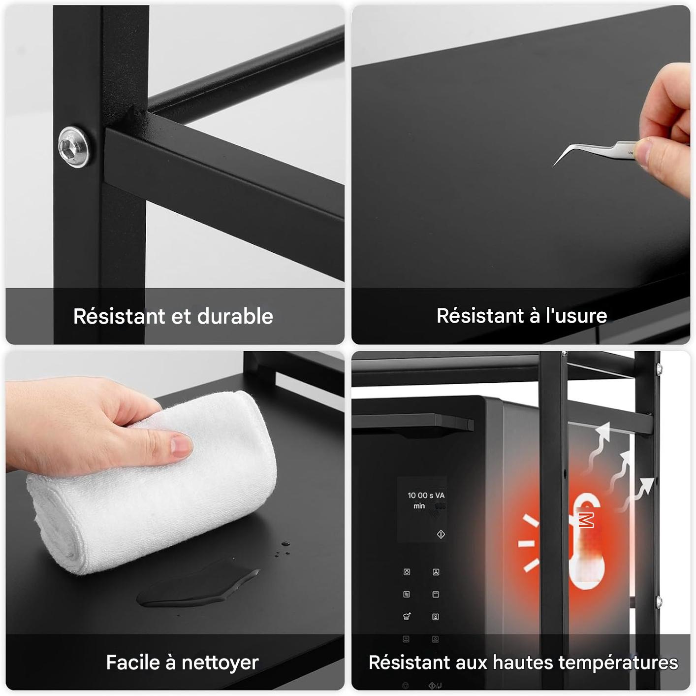 ✔ Taille réglable — Ajustez la longueur et la hauteur selon vos besoins. Parfaite pour tout type de micro-ondes, grille-pain ou robot de cuisine.